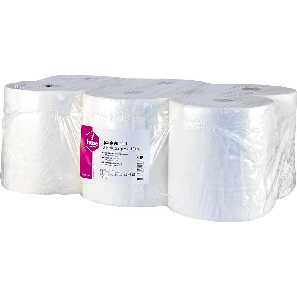 Hase 9509 Autocut ręczniki papierowe 2-warstwowe, gofrowane 140m, 6 rolek Białe
