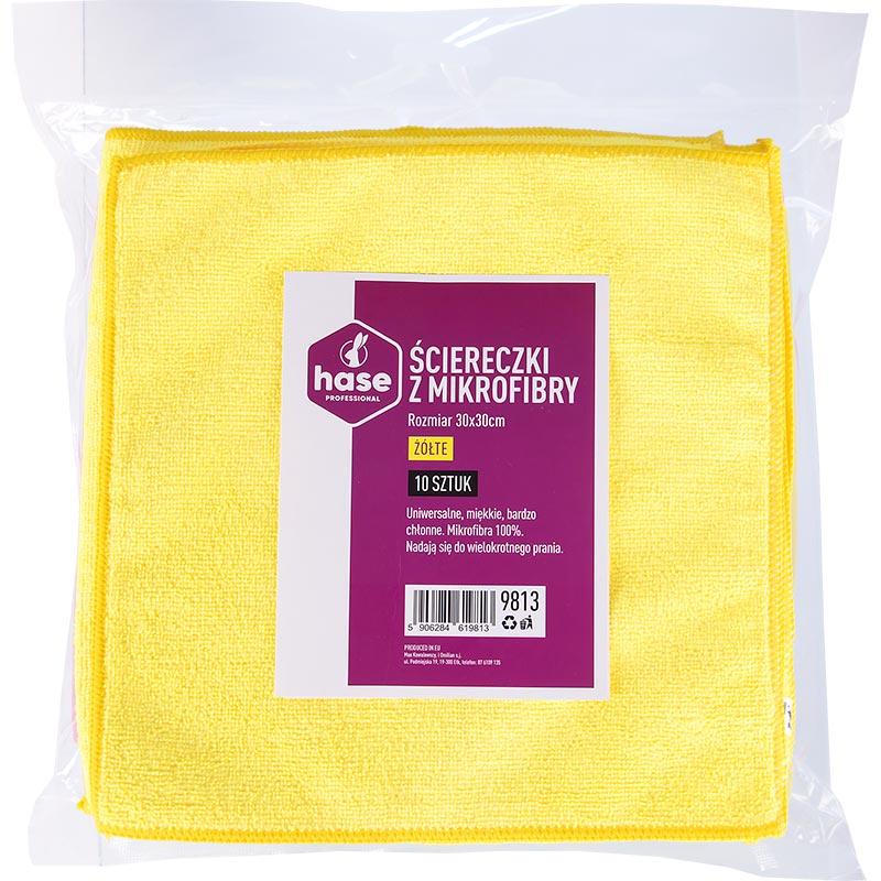 * Producent: Hase * Kod produktu: 9813 * Surowiec: 100% Mikrofibra * Kolor opisywanych ściereczek: Żółte * Przeznaczenie ścierek: Uniwersalne * Wymiary jednej sztuki: 30cm x 30cm * Gramatura ścierki: 250g * Ilość ściereczek w opakowaniu: 10 sztuk.